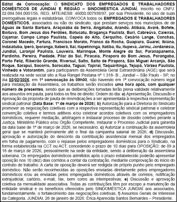 Sindoméstica Sorocaba - Sindicato das Empregadas e Trabalhadores Domésticos de Jundiaí e Região